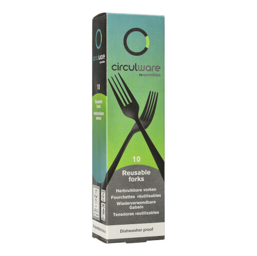 "Circulware" Mehrweg-Gabeln PP-MF 19 cm schwarz "Gaia" extra stabil