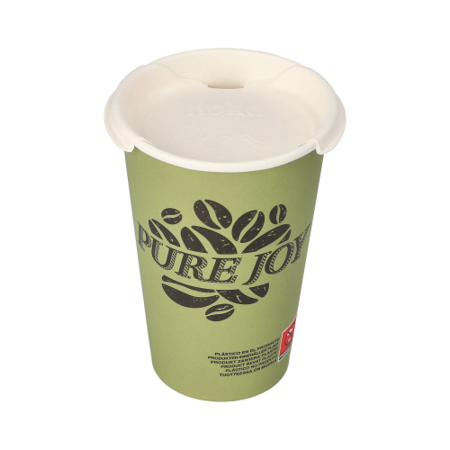 Mit einem Durchmesser von 8 cm passt der Deckel auf gängige ToGo-Pappbecher und lässt sich einfach aufsetzen. Die stabile Verarbeitung aus Bagasse sorgt für Formbeständigkeit auch bei heißen Getränken.