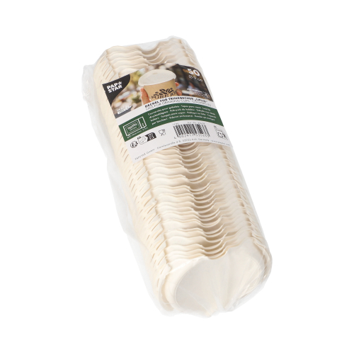 Mit einem Durchmesser von 9 cm passt der Deckel auf gängige ToGo-Pappbecher und lässt sich einfach aufsetzen. Die stabile Verarbeitung aus Bagasse sorgt für Formbeständigkeit auch bei heißen Getränken.