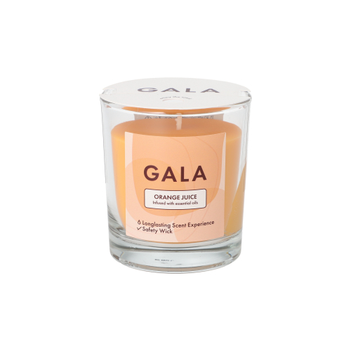 Produktinformationen ""GALA" Duftkerze im Glas Ø 70 mm · 77 mm nachtblau - Orange Juice "Mini Nutella""