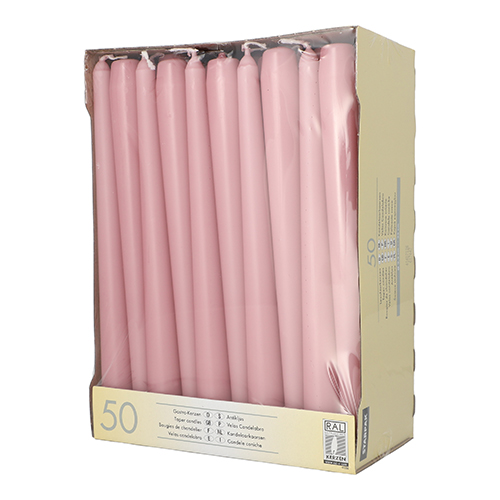 Geliefert im praktischen 50er-Pack, sind die Leuchterkerzen in Hellrosa eine stilvolle und wirtschaftliche Lösung für den täglichen Einsatz oder besondere Anlässe.