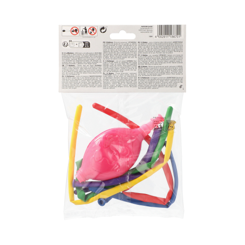 Unsere farbig sortierten Modellierballons mit einer Länge von 120 cm bieten unzählige Möglichkeiten für kreative Ballonfiguren. Mit der im Set enthaltenen Pumpe lassen sich die Ballons mühelos aufblasen und formen. Ideal für Kinderpartys, Geburtstagsfeiern und Events, bei denen fantasievolle Dekorationen gefragt sind.
