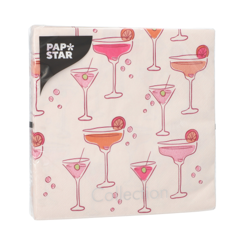 Die 3-lagigen Tissue-Servietten mit dem eleganten „Aperitifs“-Motiv setzen geschmackvolle Akzente bei jedem Empfang oder Bar-Event. Dank des Formats von 33 x 33 cm und der 1/4-Falz lassen sie sich leicht und dekorativ auflegen. Das saugfähige und stabile Material sorgt für zuverlässige Nutzung in der Gastronomie, beim Catering oder bei privaten Feiern mit Stil.