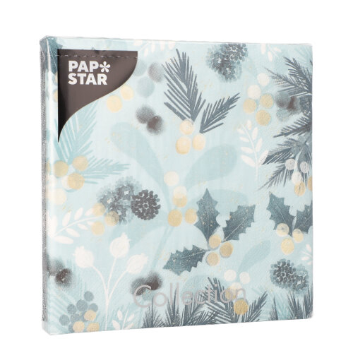 Produktinformationen "Servietten, 3-lagig 1/4-Falz 33 cm x 33 cm "Blue Christmas""