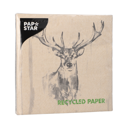 Produktinformationen "Servietten, 3-lagig 1/4-Falz 33 cm x 33 cm natur "Deer" aus recyceltem Papier"