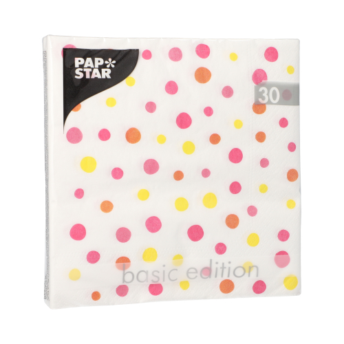 Produktinformationen "Servietten, 3-lagig 1/4-Falz 33 cm x 33 cm pink "Colourful Dots""