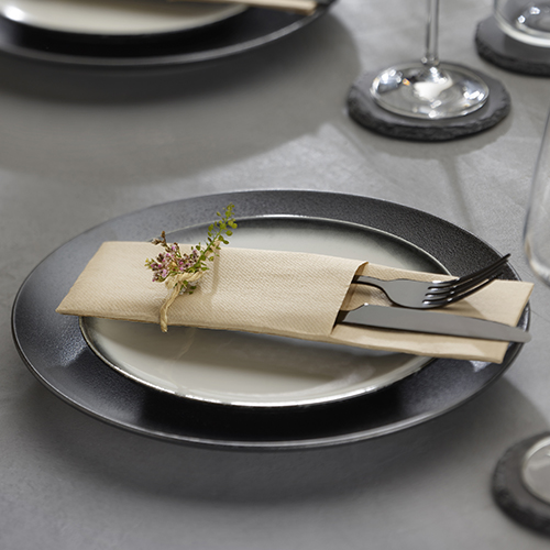 Bestellen Sie jetzt und beeindrucken Sie Ihre Gäste mit den hochwertigen und umweltfreundlichen Bestecktaschen der ROYAL Collection in Sand!