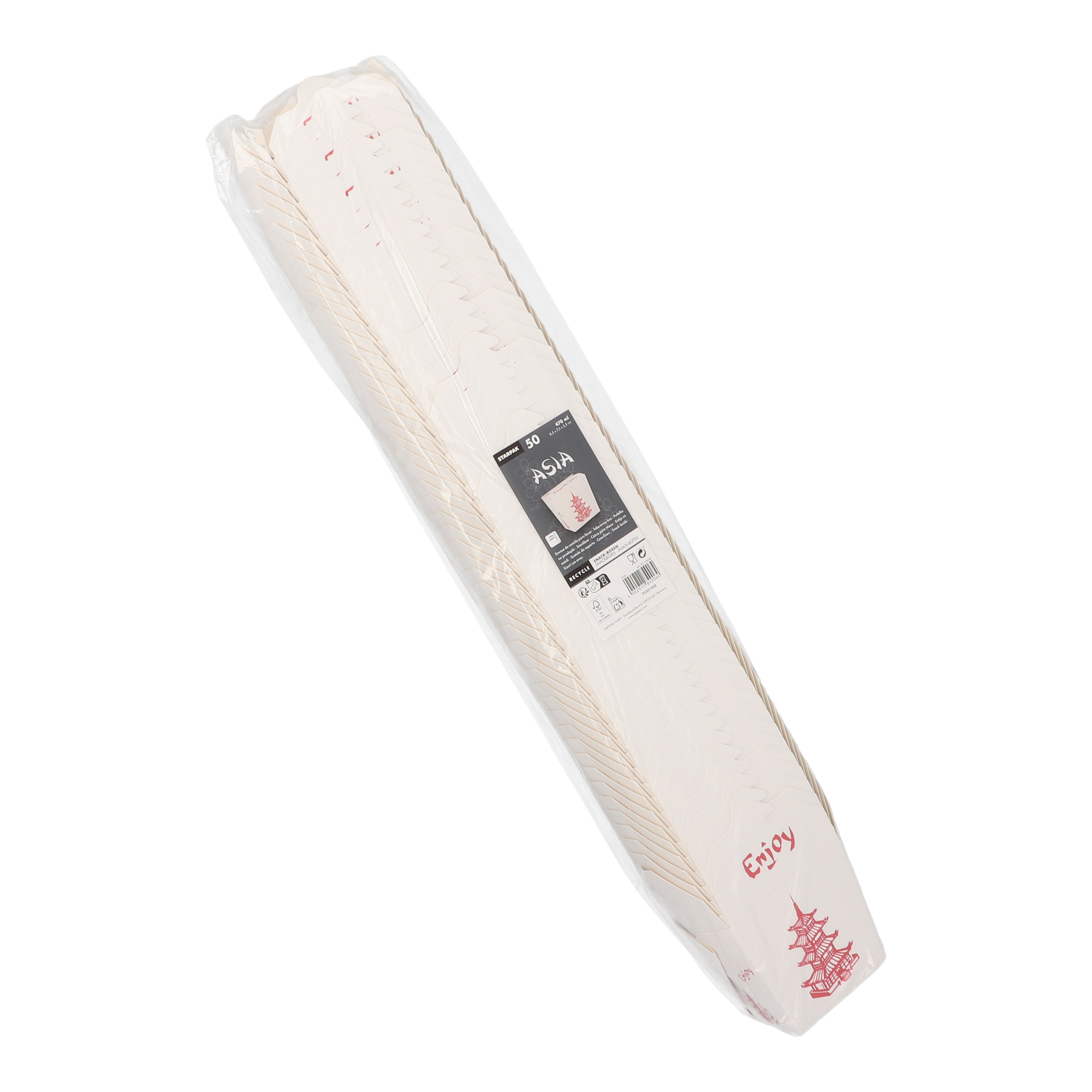 Die Snackbox „ASIA“ im Temple-Design ist Teil einer Serie mit weiteren Größen, sodass für unterschiedliche Portionsgrößen stets die passende Verpackung verfügbar ist. Eine praktische, stabile und dekorative Lösung für den modernen Außer-Haus-Verkauf.