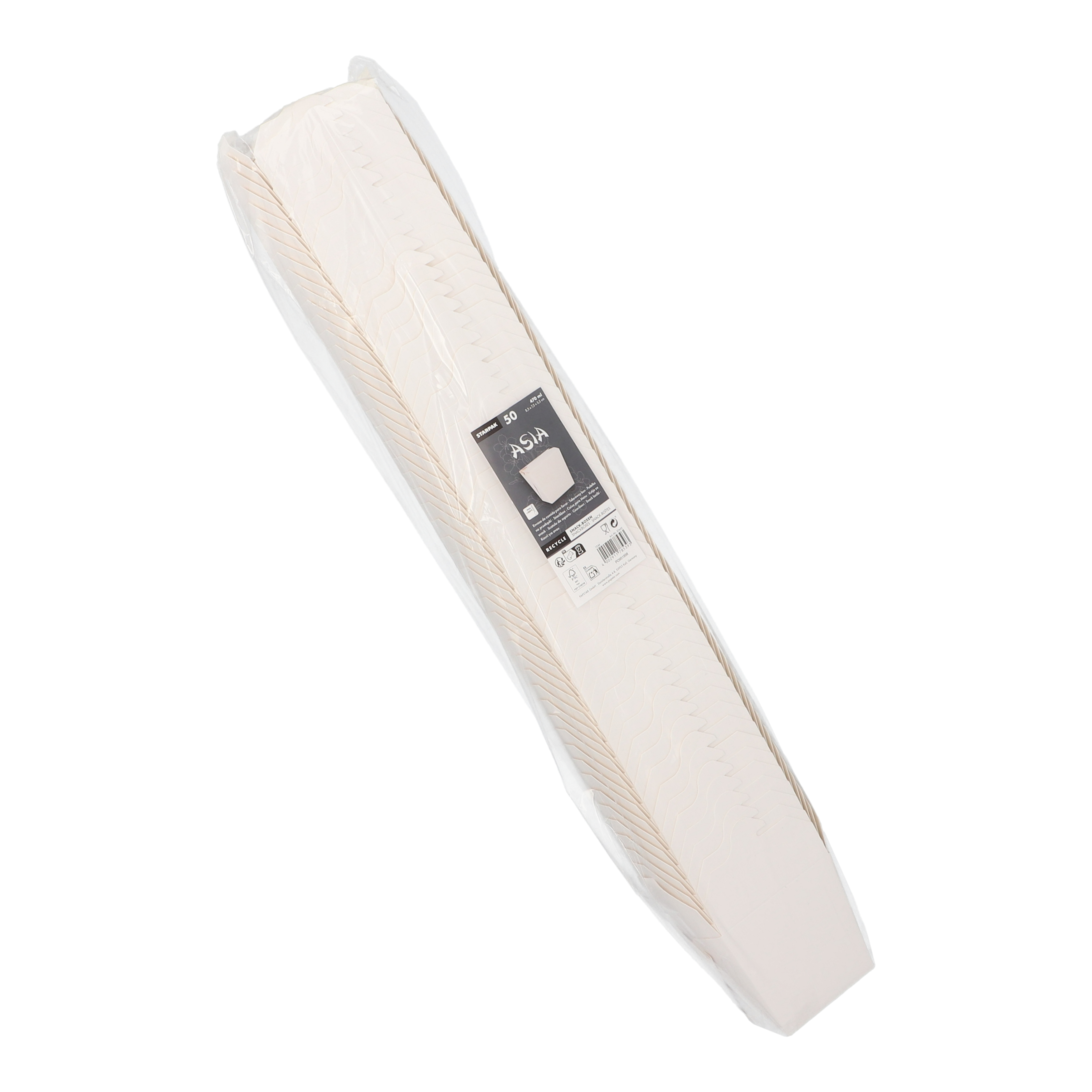 Mit den Maßen 8,5 x 7,5 x 5,5 cm ist die Box kompakt, stapelbar und platzsparend lagerbar. Die weiße Farbgebung sorgt für eine neutrale, saubere Optik, die zu unterschiedlichen Gastronomie- und Take-away-Konzepten passt.