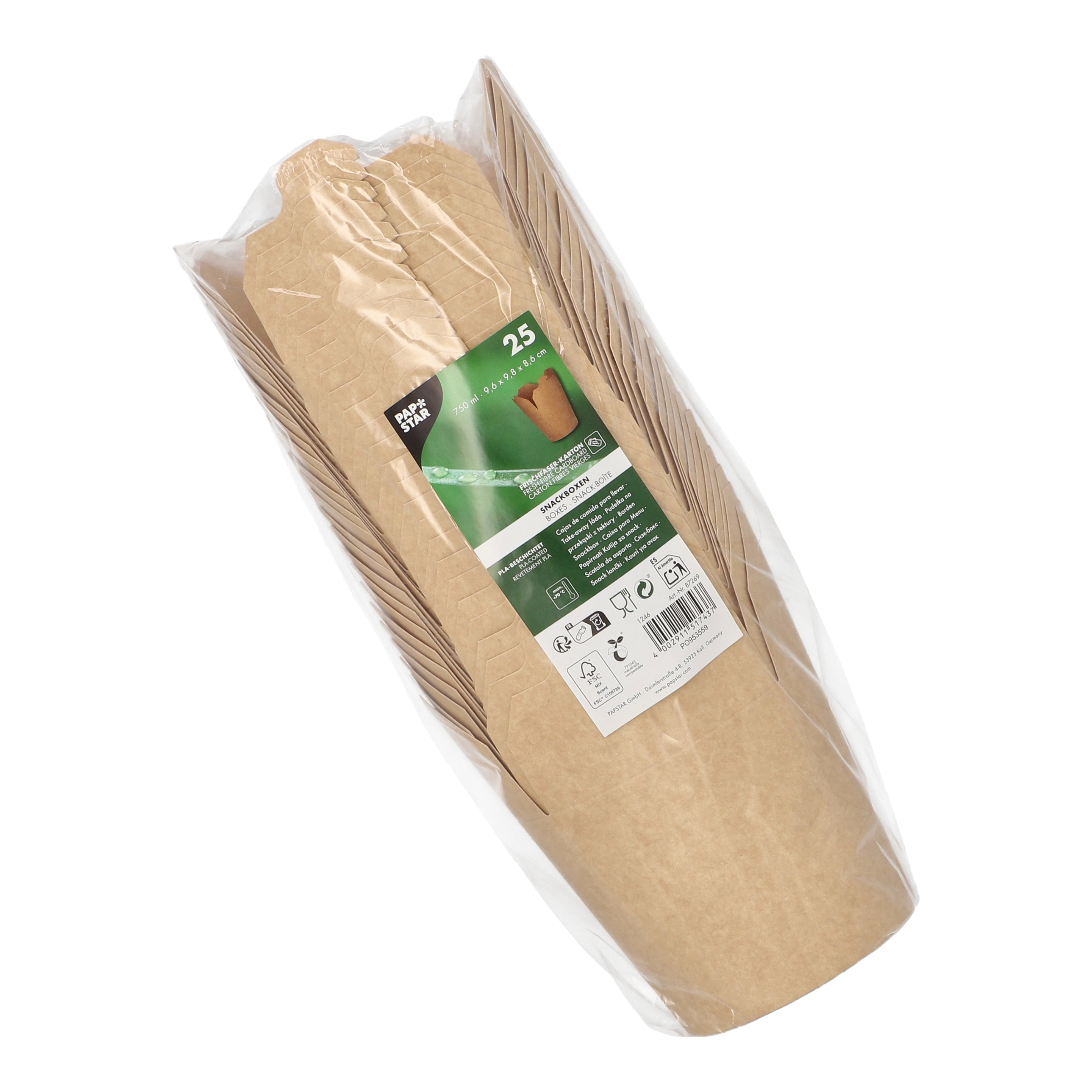Produktinformationen "Snackboxen, Pappe rund 750 ml 9,6 cm x 9,8 cm x 8,6 cm braun"