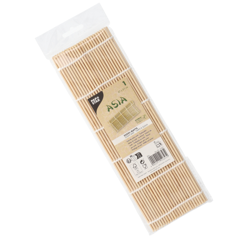 Diese naturfarbene Sushi-Matte aus Bambus, auch bekannt als Makisu, wurde speziell für das gleichmäßige Rollen von Sushi entwickelt. Mit ihren Maßen von 27 x 27 cm bietet sie die ideale Größe, um Maki-Rollen formstabil und präzise zu gestalten. Die stabile Struktur sorgt für optimalen Halt der Zutaten und hilft, ein gleichmäßiges Ergebnis zu erzielen – perfekt für alle, die Sushi selbst zubereiten möchten.