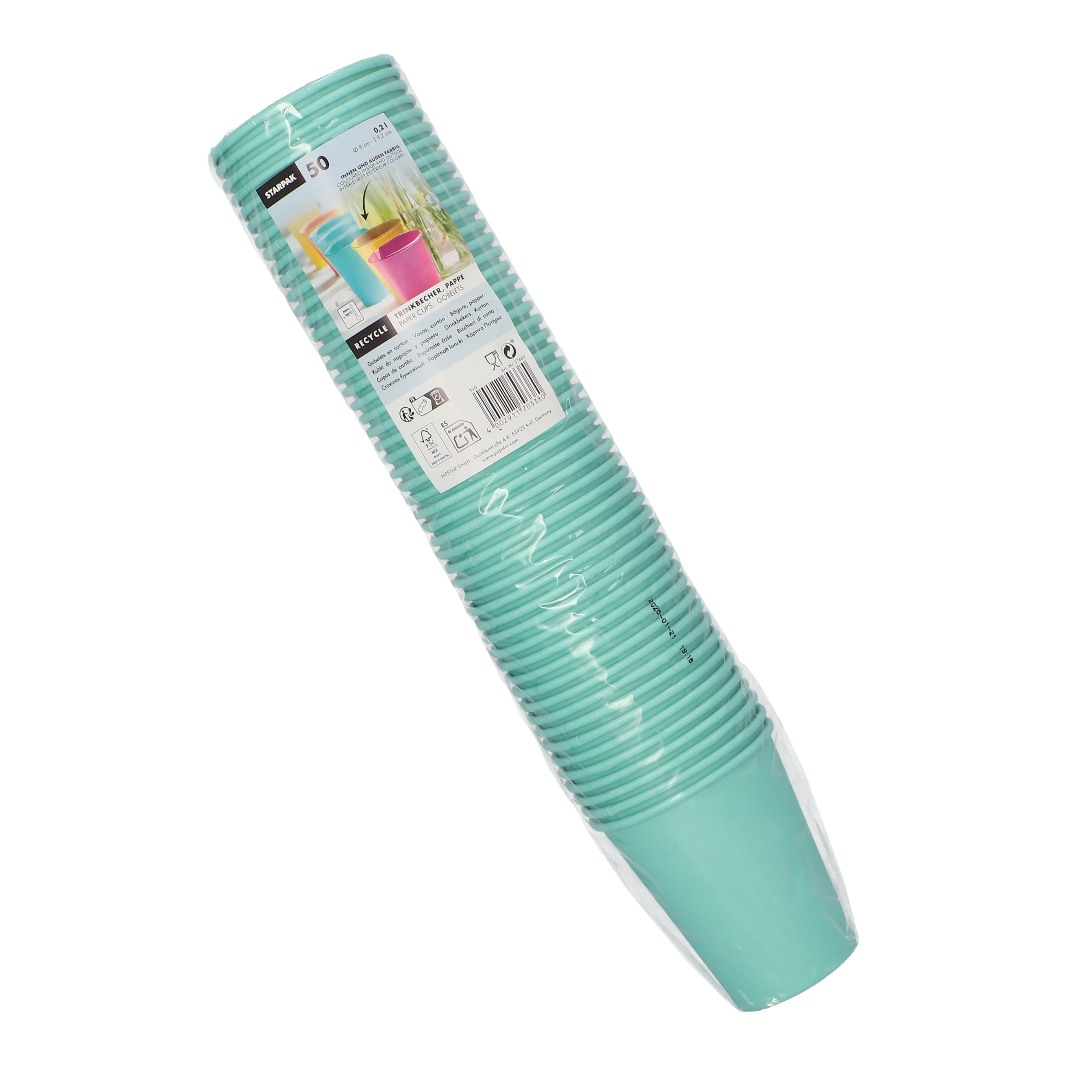 Der Pappbecher in Türkis ist die perfekte Wahl für Getränke im Take-away-Bereich, Partys oder Events. Mit einem Füllinhalt von 0,2 l eignet er sich ideal für Kaffee, Tee, Saft oder andere kalte und warme Getränke.