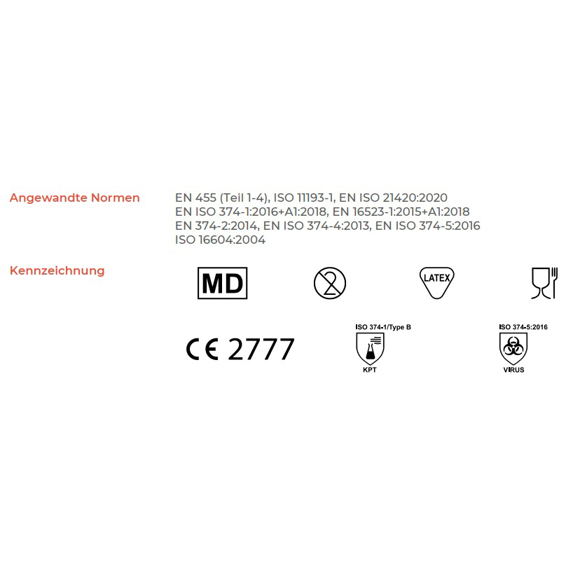- Latexproteingehalt unter 30 Mikrogramm, gemessen nach Lowry-Methode