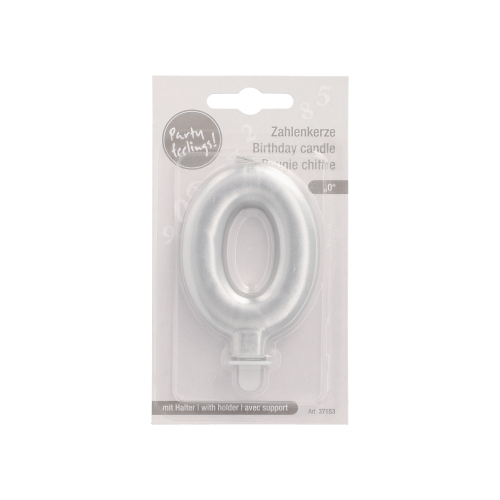 Produktinformationen "Zahlenkerze mit Halter 7 cm silber "0""
