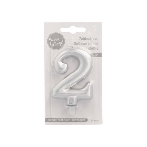 Produktinformationen "Zahlenkerze mit Halter 7 cm silber "2""